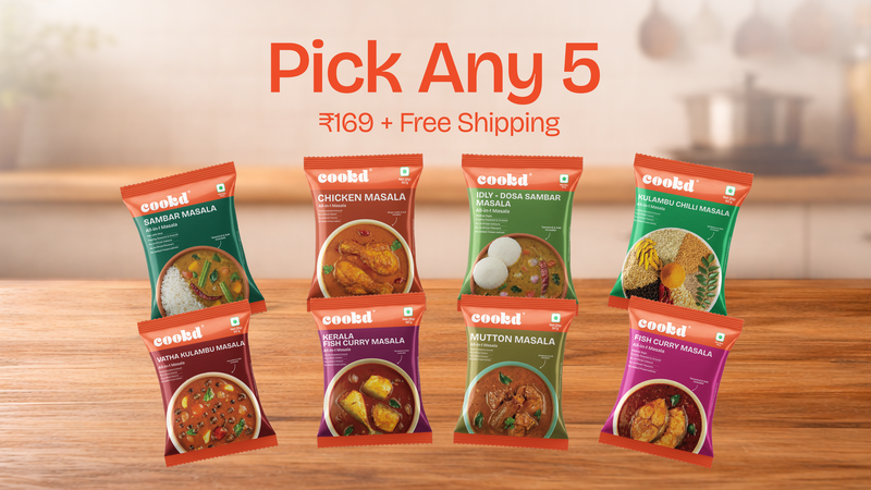 It’s an All-in-1 masala that helps you cook kulambu easily with the right spice balance.There are 6 products - Chicken masala, Mutton masala, Kulambu chilli masala, Fish curry masala, Kerala fish curry masala and Vatha kulambu masala.